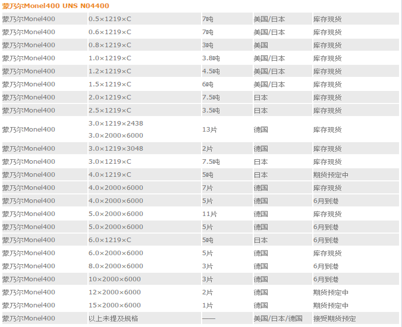 Monel400合金比純鎳更耐還原性介質(zhì)的腐蝕,而較純銅更耐氧化性介質(zhì)的腐蝕。用于船用換