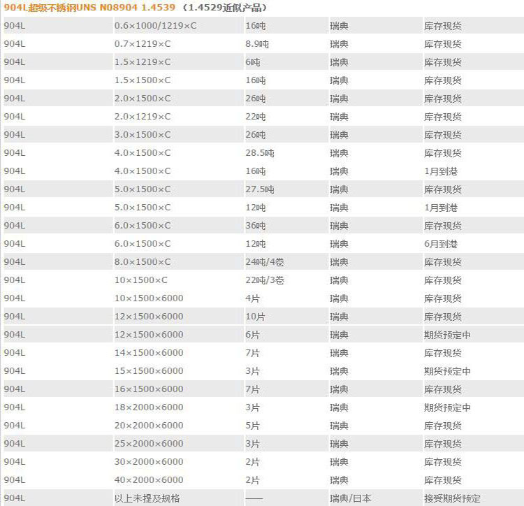 904L薄板/904l中厚板/904l卷板
