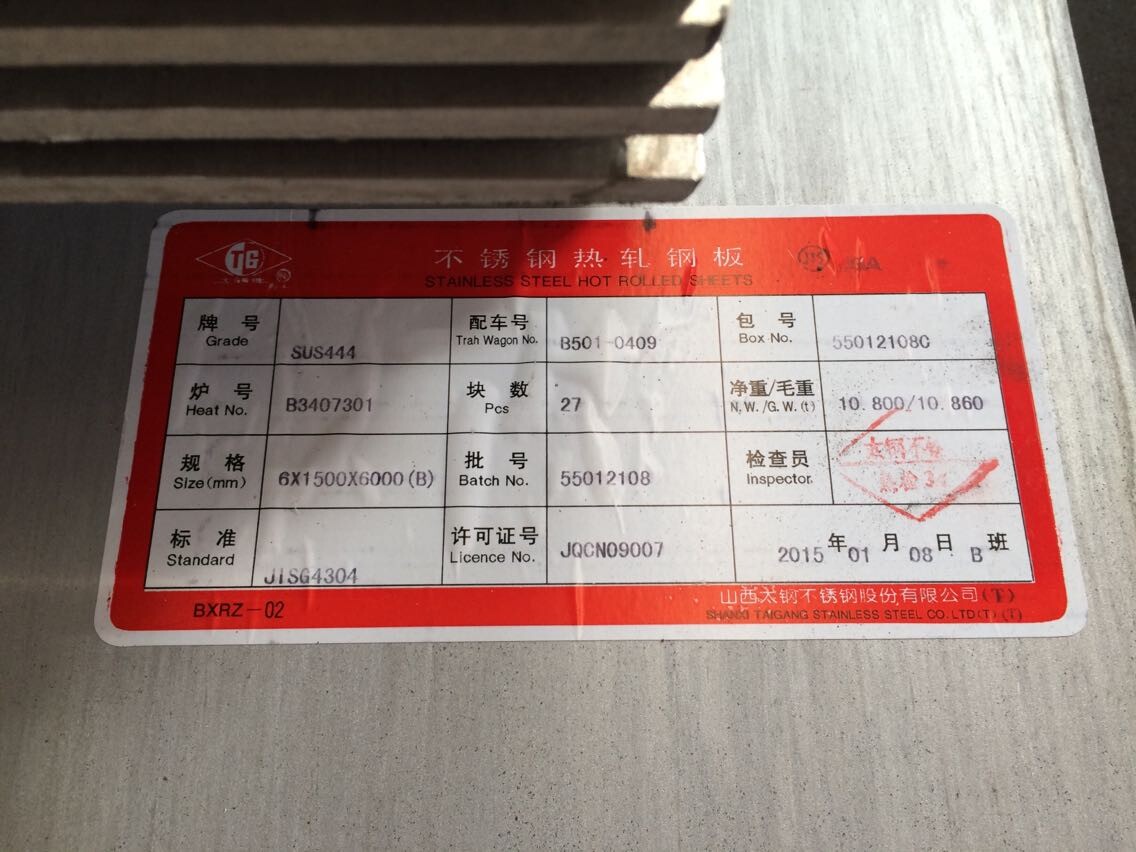 SUS444鋼種屬于高合金鐵素體不銹鋼,與常用鋼種SUS430相比:1. 含鉻量高1.0%左右,且添加了合金元素鉬(Mo),因此該鋼種具有良好的耐點蝕、縫隙腐蝕、應力腐蝕能力,其耐蝕能力在某些領(lǐng)域甚至優(yōu)于SUS304和SUS316。2. 添加了鈦(Ti),鈮(Nb),鋯(Zr)等穩(wěn)定化元素,因此該鋼種具有良好的耐晶間腐蝕和耐高溫氧化性能。 1、化學成分: 2、機械及物理性能:(參照JIS標準) 3、主要用途: SUS444是鐵素體鋼中最耐熱的鋼種,1000℃以內(nèi)高溫抗氧化性能優(yōu)良,相反,304在水溫達到50-90度之間最容易被腐蝕。與304相比,444鋼種具有高抗氯、優(yōu)良的耐應力腐蝕性、抗點蝕性等有點,且不易結(jié)垢、吸熱效果強,其耐腐蝕性與SUS316鋼種相近。 基于444鋼種的特性,主要用于制造貯水槽、太陽能熱水器、熱交換器、視頻機械 TTS443鋼種性能和用途 TTS443無鎳型不銹鋼,鉻含量高達21%,具有和SUS304同樣優(yōu)異的抗腐蝕性,出色的成型性,良好的高溫性能,價格卻只有SUS304的65%,適用于家電制品、車輛部件、廚房機器、內(nèi)外建筑裝飾材料、集裝箱內(nèi)板等領(lǐng)域。 |