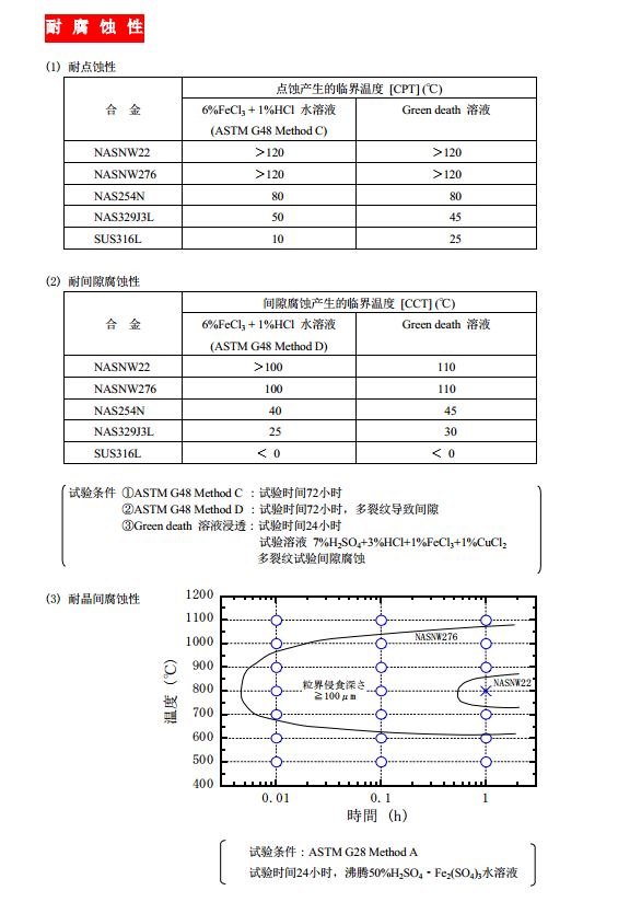 特性: Hastelloy C-22合金是全能的鎳鉻鉬鎢合金,比其他的鎳鉻鉬合金(包括Hastelloy C-276、C4以及Inconel 625)擁有更好的綜合抗腐蝕性能。Hastelloy C-22合金有很好的抗點腐蝕、縫隙腐蝕和應力腐蝕開裂的能力。它具有優(yōu)異的抗氧化性水介質的能力,包括濕氯、含有氯離子的硝酸或者氧化性酸的混合液。在還原性和氧化性工藝物料流交替出現的工況下,Hastelloy C-22合金是理想的選擇。依靠這種萬能的性能,它能在一些令人頭疼的環(huán)境中使用,或者在多功能工廠中應用。Hastelloy C-22合金對各種化工環(huán)境有著異常的抗蝕能力,包括強氧化性物質,比如氯化鐵、氯化銅、氯、熱污染溶液(有機的無機的)、甲酸、乙酸、醋酸酐、海水和鹽水溶液等。它能阻止在焊接熱影響區(qū)形成晶界沉淀,使它在焊接狀態(tài)下也能適應很多種化工工況。 應用: 備注: Hastelloy和C-22是Haynes International, Inc.的注冊商標,Inconel是SMC國際鎳合金集團的注冊商標。